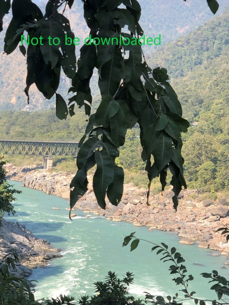 For a city dweller who could only see buildings of various tones and whose ears were filled with cacophony of machinery and vehicles, my eyes soaked in the colours and my ears discovered the natural sounds around. The river, as if aware of a spectator, entertained merrily by adorning different colours. Near the opposite bank, it wore a teal and olive green colour, as it reflected the mountains towering over. In the middle, where it was most energetic, it was turquoise with the waves forming white trims, and closer to me, it was celadon.