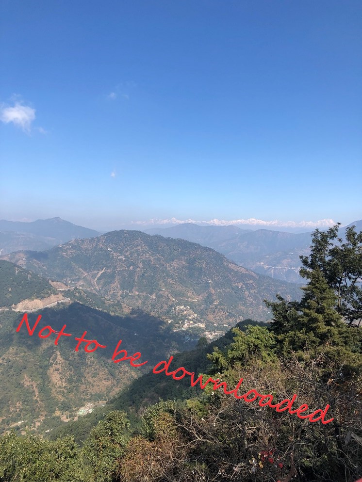 From atop Kunjapuri Devi Temple top. Snow clad Himalayas in the distance