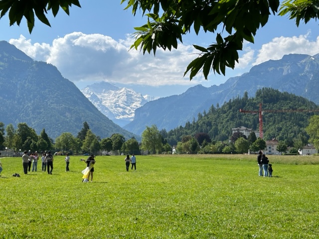 I could see many paragliders jumping off the cliffs and floating and descending on to the field we were in. Just behind these hills, I could see a glimpse of JungFrau where we were off to next.