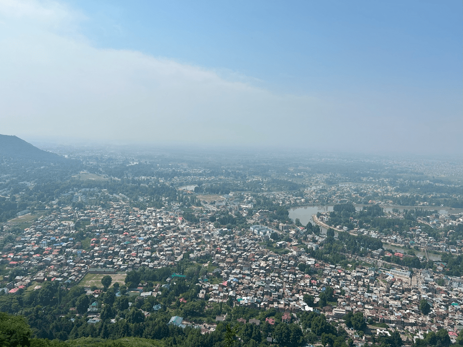 I had never been to Kashmir and I looked as far away and down as possible. Waves and waves of mountain ranges, some capped with white fringes, others dark and solemn, and down below, still appearing dark green stood the city, famed for its lakes and gardens.