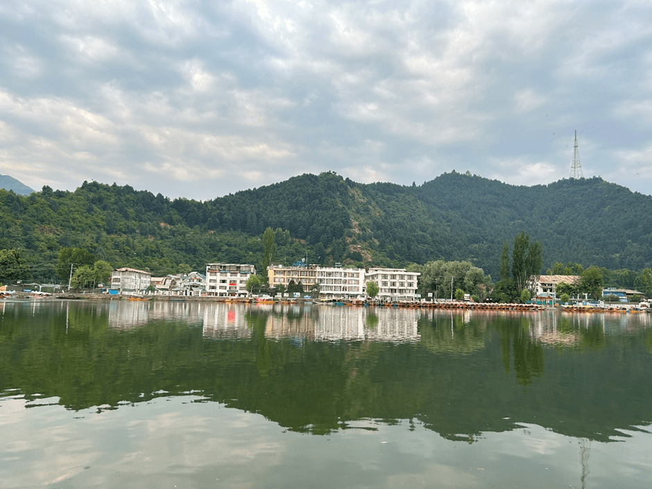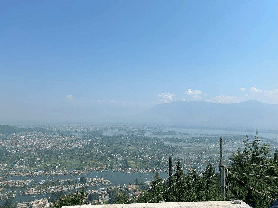 Post breakfast, we made our way to visit the ancient Shiv temple, built on top of a hill in the Zabarwan range. It was built in the 7th century. Though there has been evidence unearthed that it would have existed Before Christ. In the 8th century, Adi Shankaracharya had visited the shrine. We had to board a government bus which took us up the hill. We then walked uphill 900 meters and then climbed 275 steps to reach the Shiva temple. A tiny, temple, built of stones, typical of that age, but now being held together by scaffolds. From atop the hill, as we stood in line to enter the inner sanctorum, we could view all of Srinagar city, its lakes, gardens but mostly the densely populated houses, looking like miniatures.