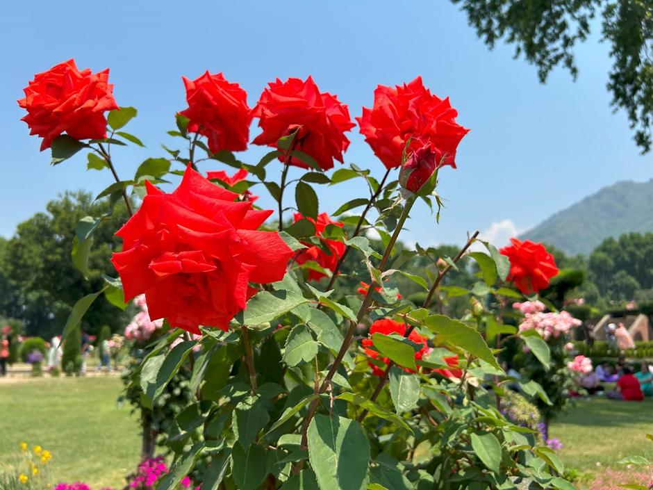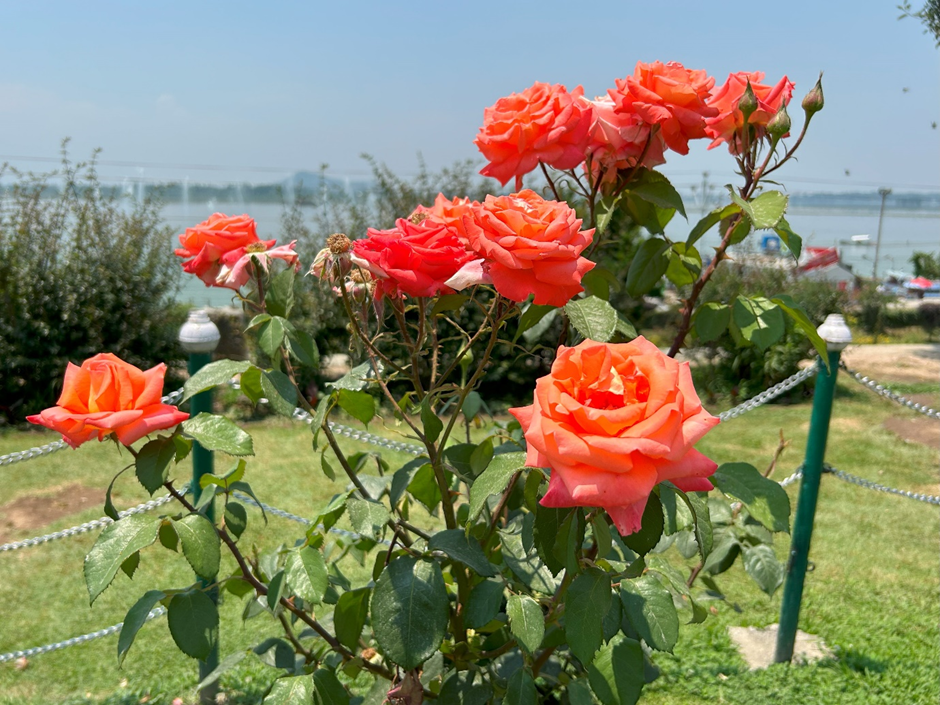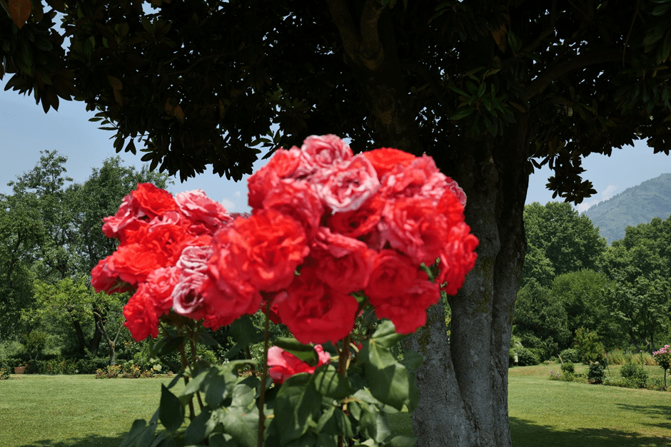 A multi acre park built over seven steps on the slopes of the Shivalik hills. It overlooked the Dal Lake and just across we could see the domes of Hazrat Bal glistening. It was a pleasant weather and it felt wonderful to traverse the park across its seven layers, dotted with tall trees of walnut, pines, fir, birch and many others. The landscape is still maintained the way it was built 400 hundred years ago with numerous varieties of flowers, chief among them were the roses. I had never seen so many hues of red, yellow, orange, white, blue, purple.