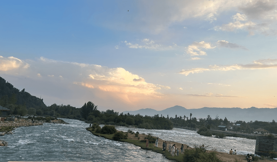 We started early next day, but not before freeing ourselves from local hawkers trying to sell us walnuts. We travelled alongside the gushing Lidder River, sometimes it flowed with strong currents and sometimes quietly like a shy bride, but all the time never far away from the road.
