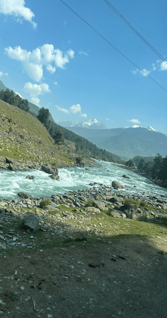 Our hotel was next to the gushing Lidder river. A narrow strip of a river, but so ferocious, very strong current, gurgling noisily down, and meandering next to the highway, NH44.