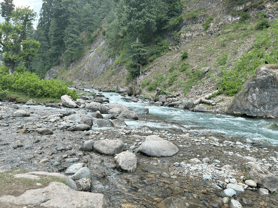 Keeping Lidder river as our company, we crossed Lidder Park and then reached Aru Valley. This had multi tier falls flowing down to meet Lidder river.