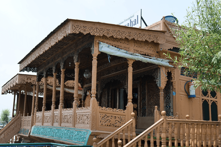 Our houseboat had 2 floors with exquisitely carved floral designs on its walnut wood walls. The furniture also bore the matching floral patterns. The houseboat overlooked the Dal lake which was bordered by the Zabarwan range on one side and the Shivalik hills on the other.